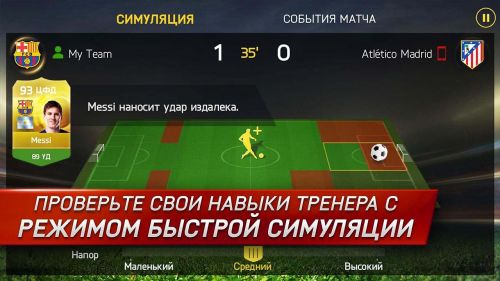 FIFA 15 Ultimate Team является новой версией знаменитого футбольного симулятора от EA SPORTS. Как и прежде, вы получаете качественную графику, более 10 000 реально существующих футболистов играющих в актуальных командах с учётом последних трансферов, актуальные формы команд и конечно же стадионы! Также, вам доступны все самые популярные футбольные лиги, чемпионаты, кубки и другие события. Как и прежде, играть можно любимыми командами, либо начать карьеру, создав собственную команду мечты. Миллионы игроков по достоинству оценили все преимущества FIFA 15 для Android, поставив наивысшие оценки. Это значит, что данная игра не имеет аналогов и является лучшим футбольным симулятором для Андроид.